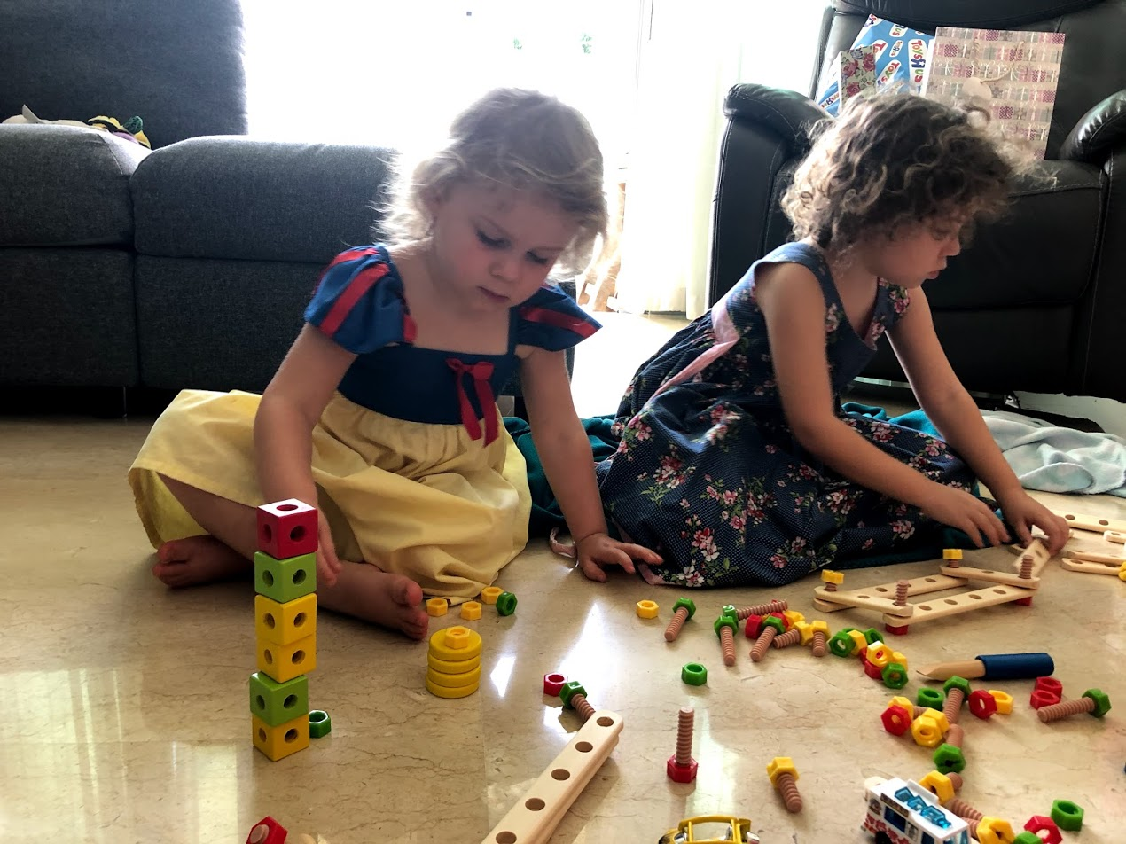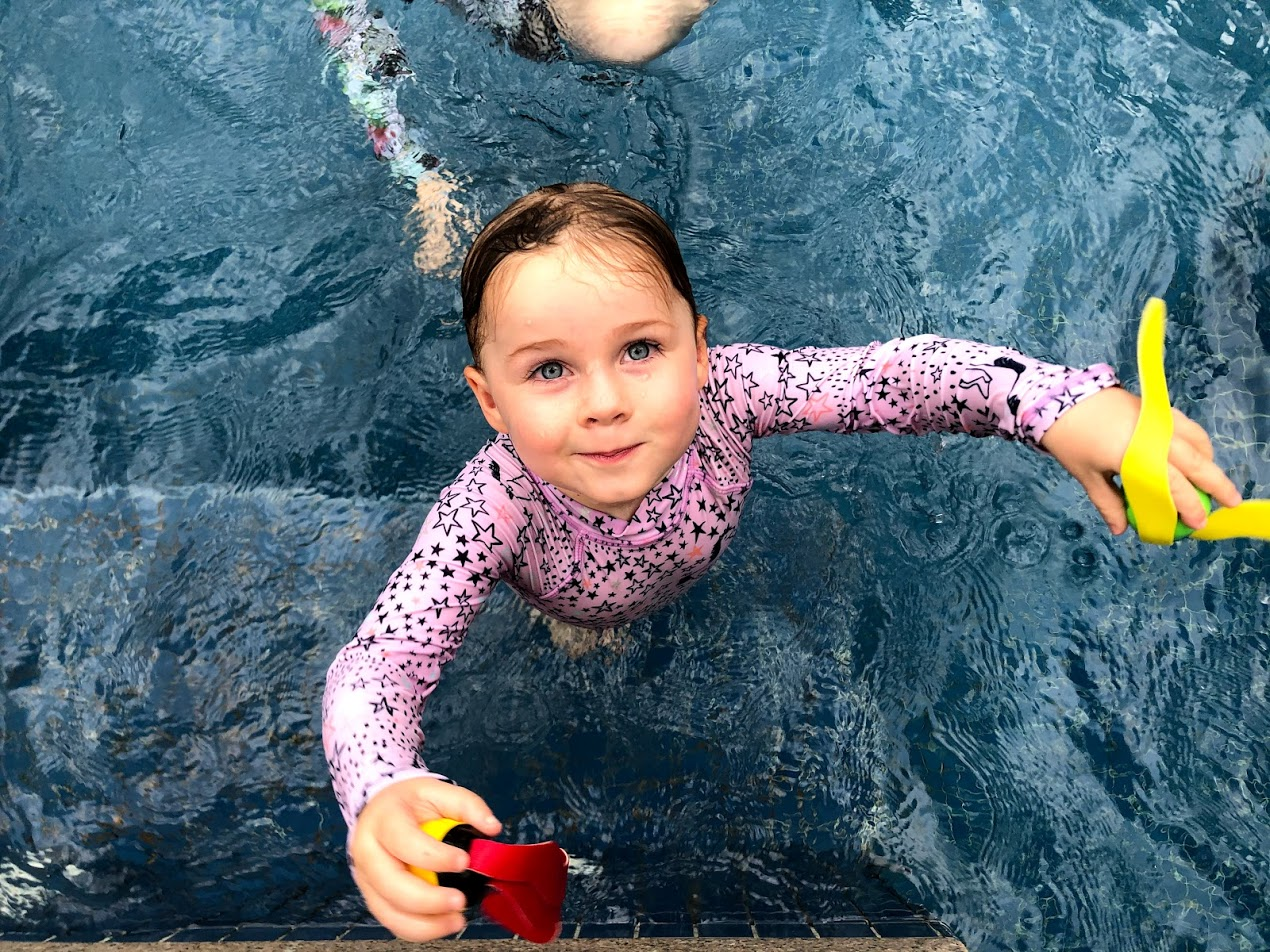 I find it amazing that she's never had a official swimming lesson. She does spend at least 7 hours in the water a week though. She received new diving toys for her birthday. She hasn't remembered how to swim along the bottom to pick them up yet. Before the Lock-Down pool break, she would ask us to "throw [her] down" and she would take a big breath and then we would push her down to the bottom of the pool and she would swim along gathering up the diving toys. At the moment she's having fun getting them from shallower water like on the stairs.