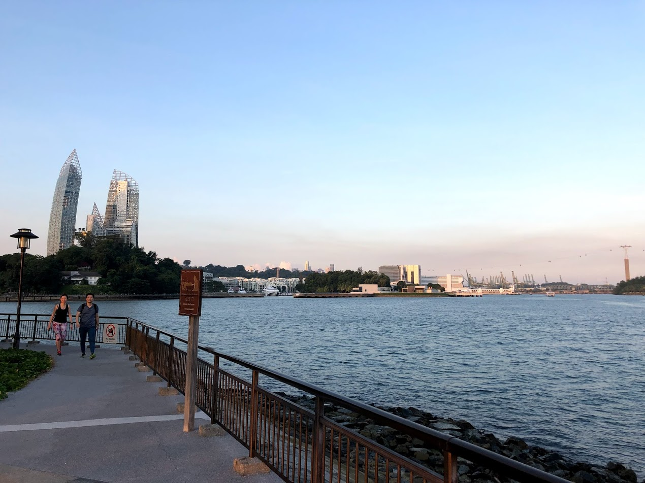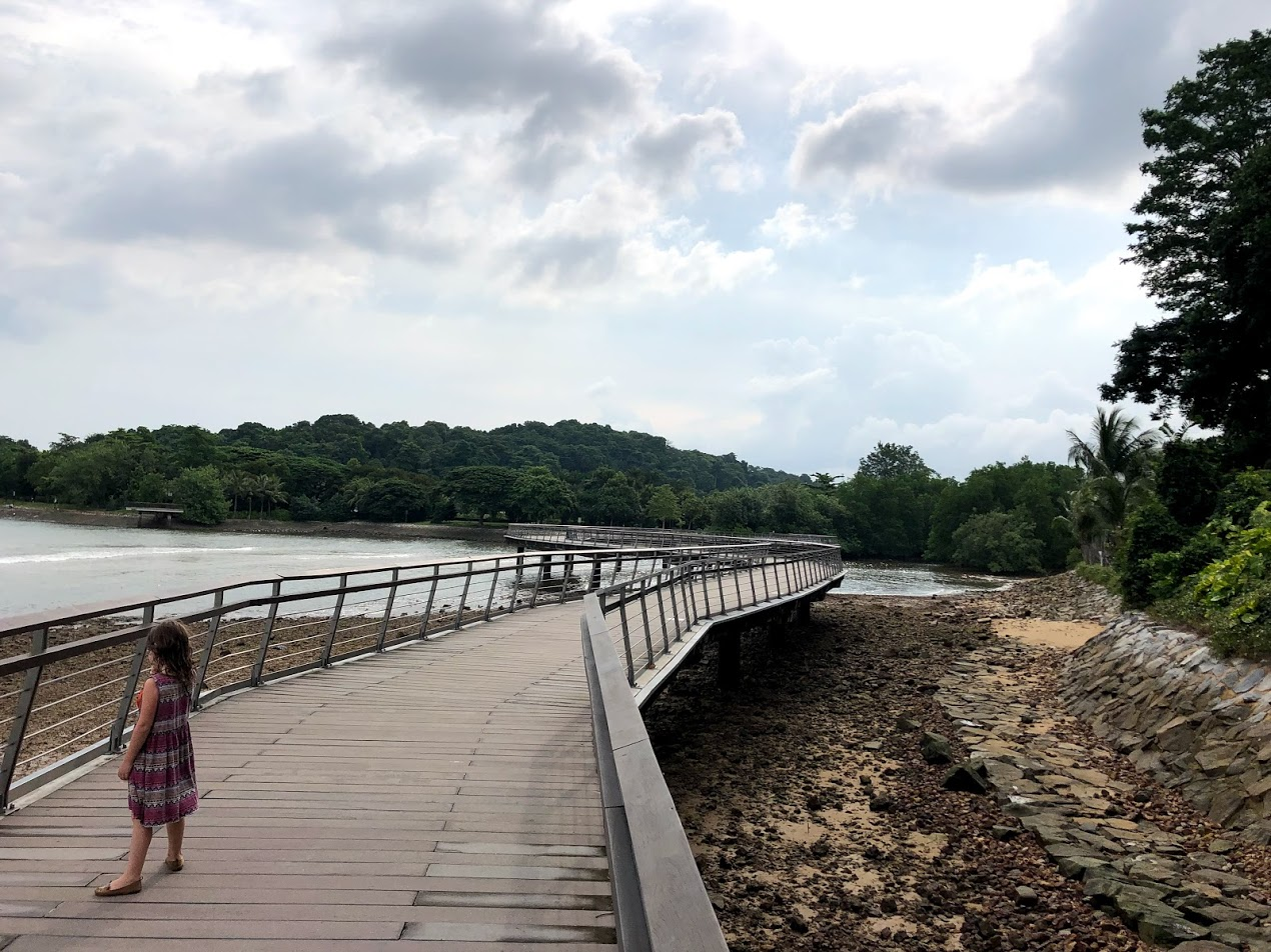 There's a large Boardwalk along the waterfront bordering our condo complex. It reminds us a bit of the West Bay Walkway in Victoria, BC, Canada. The Boardwalk here in the Harbourfront area in Singapore is a wide flat walking path that overlooks the Marina, then curves out of the harbour, hovering above the water, over beaches, and running through the trees. It was quite hot at 6 pm when we set out with the girls, but as soon as we got out to the Boardwalk, there was a nice refreshing breeze.