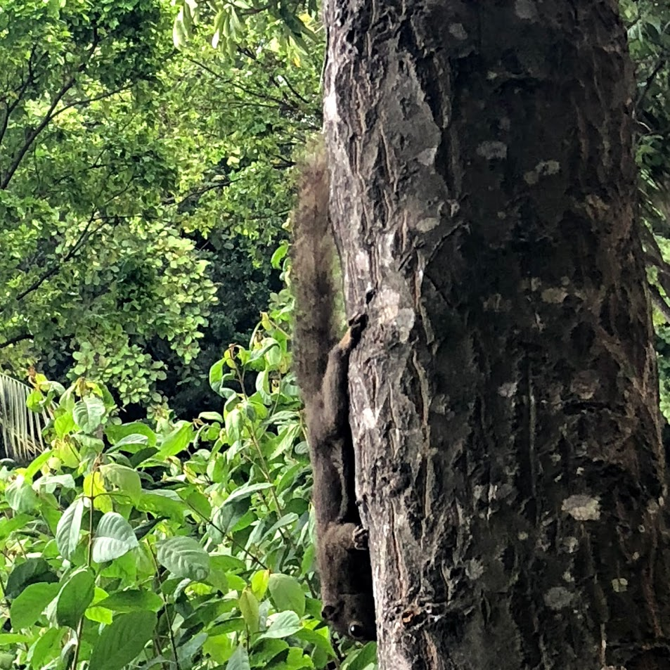 We've seen Plantain Squirrels here too. They have a call that sounds more like a bird and their tails look like a long feather. If you stop too long in places here, the ants may also try to carry you away.