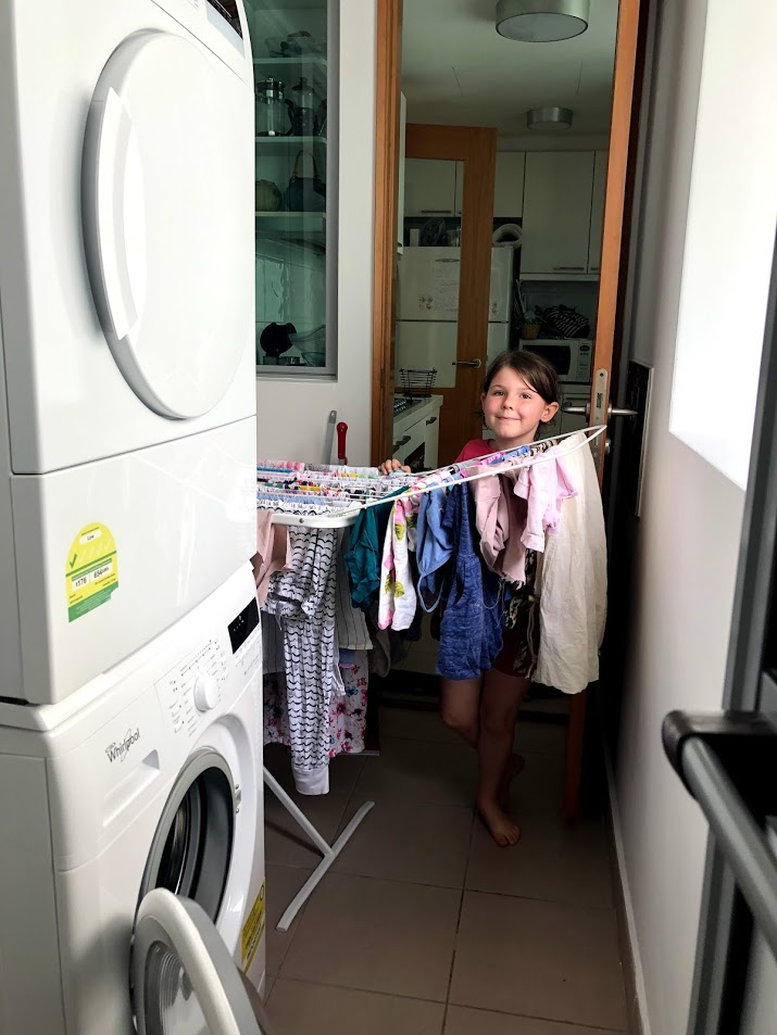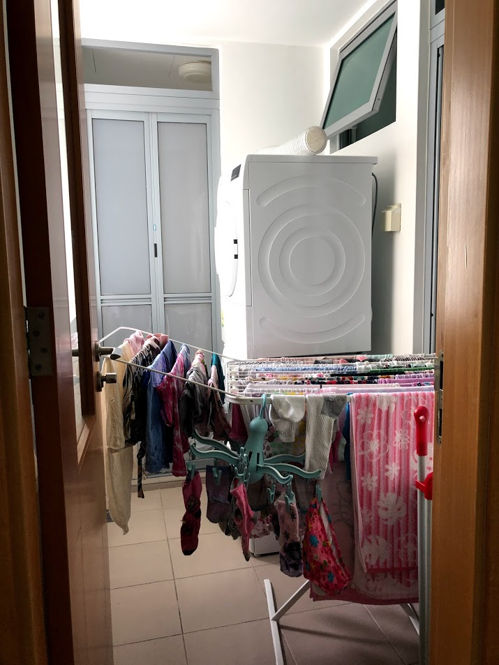 The laundry never ends no matter what country you live in. One of MY major housing requirements was a separate dryer, and I got one. Which is a good thing because I'm doing laundry everyday. Even though I've got a dryer I'm trying to do things the Singaporean way, so my drying rack is my new best friend. It fits an entire load of laundry.