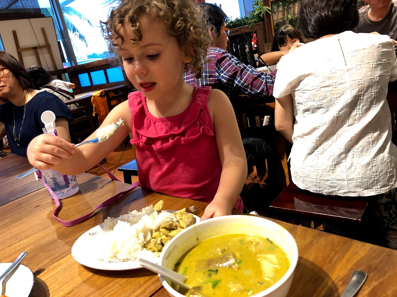 Ms.E’s favorite food is "Red Thai Curry". She call is “Chicken and Rice, and I can not find it in Singapore. I've searched the Hawker Centres. I've bought 5 different jars/packages of Thai “Red Curry” paste at various super markets all over town. It's settled - Thai red curry paste is a totally different flavour here. It's more like a yellow Indian curry. It's good; it's just not "Red Thai Curry". The closest flavour I’ve found here is is "Green Thai Curry", but to a 4 year old it’s the “wrong” colour. I've considered food dye, but I don't think it would help. This realization was a little devastating - Red Thai Curry was part of our master plan for feeding our pickiest eater.