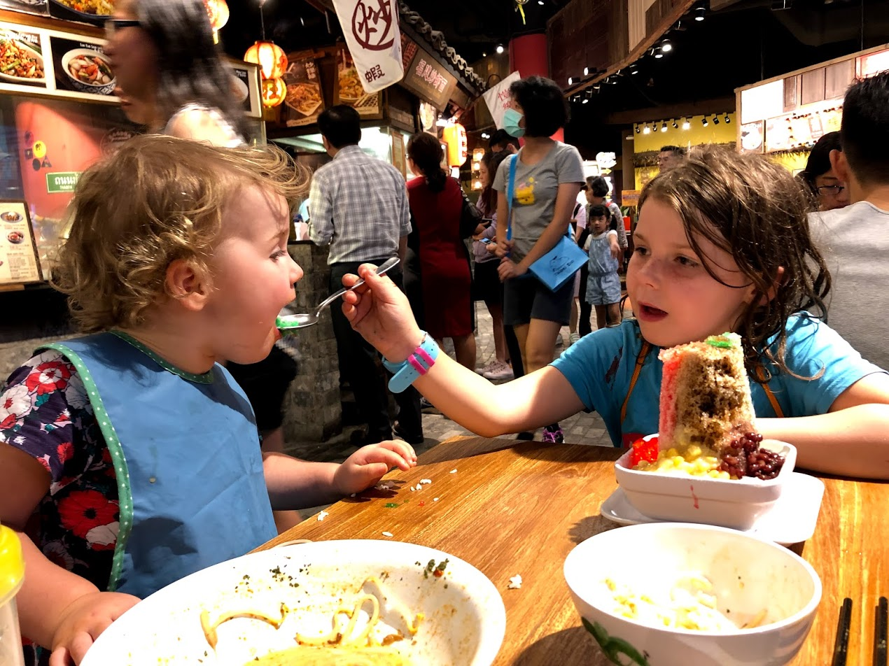 Ms.E finally tasted Green Thai Curry after only 8 weeks in Singapore. At the end of dinner out she surprised us by saying "I’m still hungry. I'll be brave, and try the green one". No time to waste, I immediately I bought a whole dish for her - $5. She liked it too. I tried not to make a big deal of ripping up the chicken for her, because it comes on the bone here, not chicken breast like in my Canadian kitchen. Ms.E says "I'll eat it at ALL the Hawker Centres." My purse may feel a lighter with out it's many green apples and Nutella sandwiches.