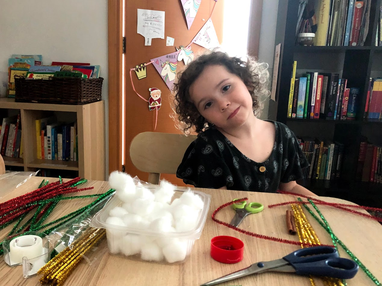 Back home later we made some cardboard snowmen and played around with sparkly pipe cleaners.