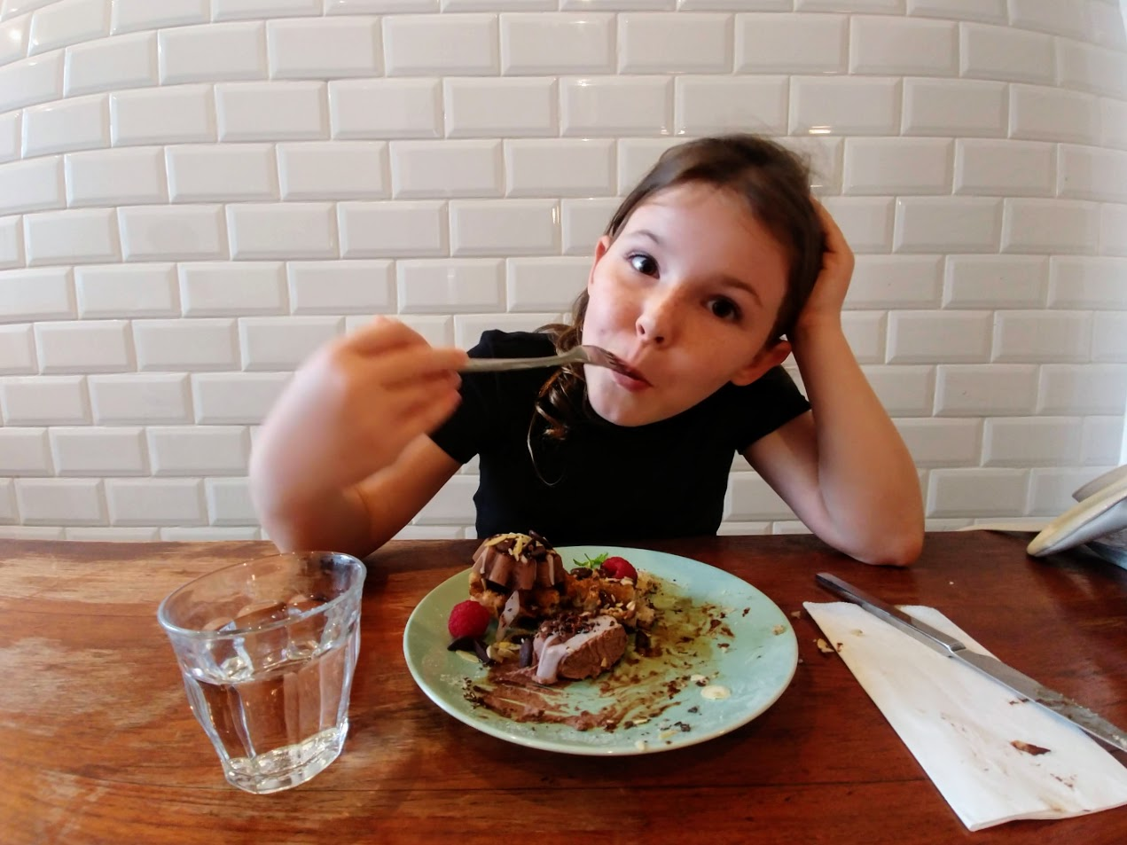 Eating with food sensitivities in Singapore is a real challenge. Unless we're in a high end restaurant, people just don't get it. So eating at Tiann's was amazing. I could eat everything on the extensive menu. I pursued the menu for a long time and then settled on lasagna. It was so good I almost cried, so creamy and like real lasagna. It was the first I've eaten in more than 2 years. It was pretty easy to also find dairy free options here for MsC too; they were clearly labeled (Dairy free and/or Vegan). MsC picked the Vegan Chocolate Dessert Waffles. They came with slabs of chocolate coconut ice cream, curls of chocolate and fresh raspberries. It was really rich and she let me eat quite a bit of it. There's also a large counter at the front displaying all the bakery goods and custom ice cream.