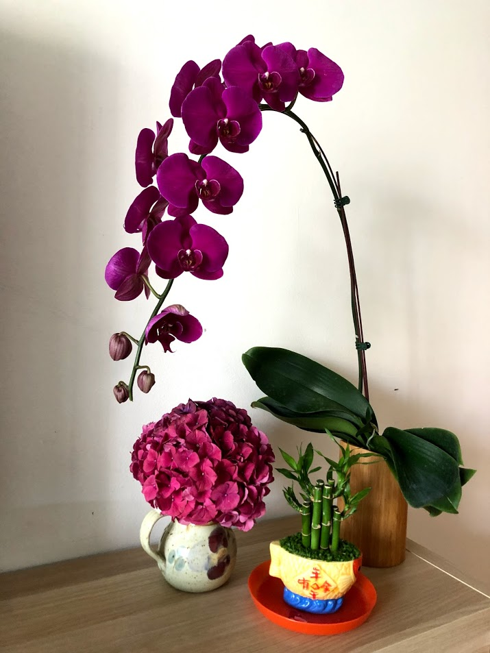I think my orchid is having a bit of a time adjusting to being inside. The market is open air, and although we keep the doors open in the morning, we run the air con all afternoon. A lot of people keep hang their orchids outside on their patios. I totally forgot that was a possibility when I bought mine. I saw the hanging ones, but couldn't fathom where I would hang it from. If this one doesn't make it I'll go back for some hanging ones and put them around my patio.