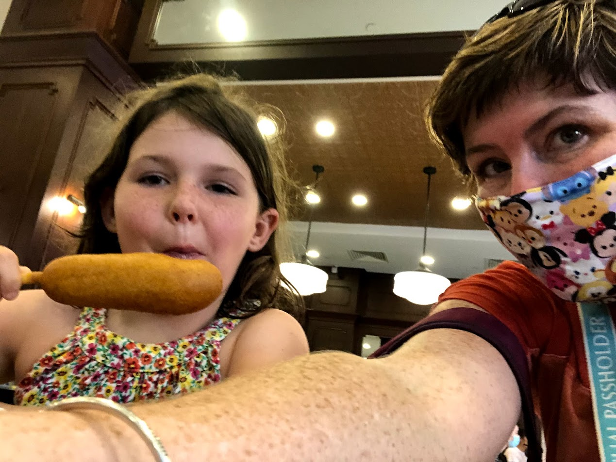 We got our amusement park food in too, with MsC picking up corn dogs. I walked all the way back to the Park's Starbucks only to learn they were out of Pumpkin Spice Lattes.