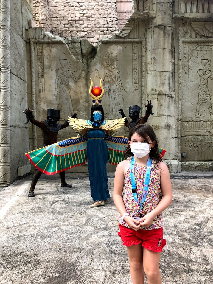 There was a line to stand on about 6 feet in front of the characters to keep you all separate while still getting your photo. No hugs. It's a bit unnerving to turn your back on the characters to get your picture taken. I'm sure this would freak little ones out. MsC said she was worried the scary guys in black would jump out at her while she was getting her Egyptian Princess picture.