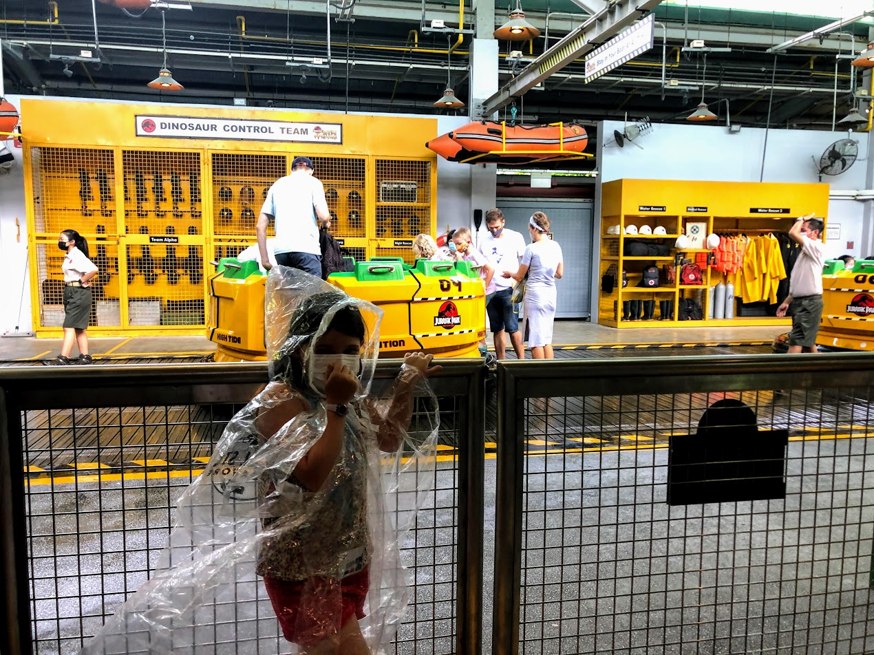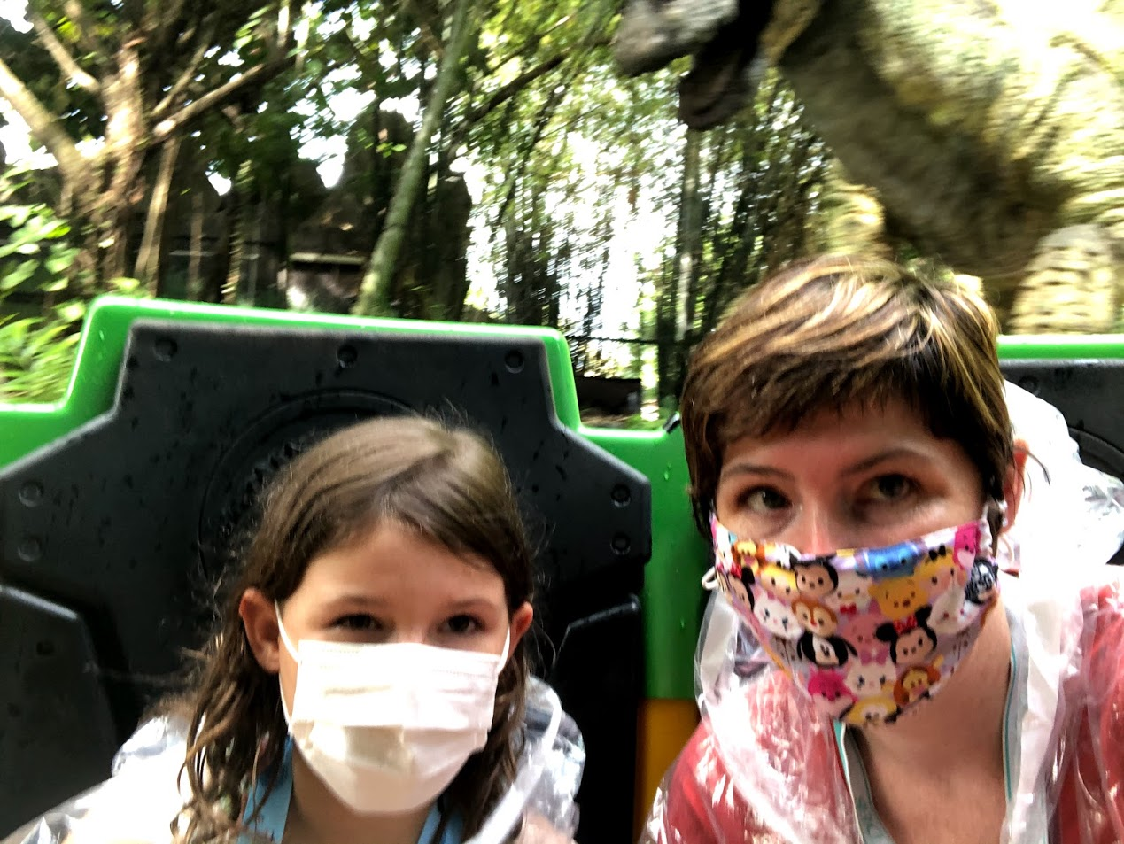 We rode Jurassic Park with our rain ponchos securely fastened. We it was so hot out and we stayed so dry that we debated whether we should ride it again without the ponchos, but we decided to go on the air conditioned Egyptian Mummy Ride instead.