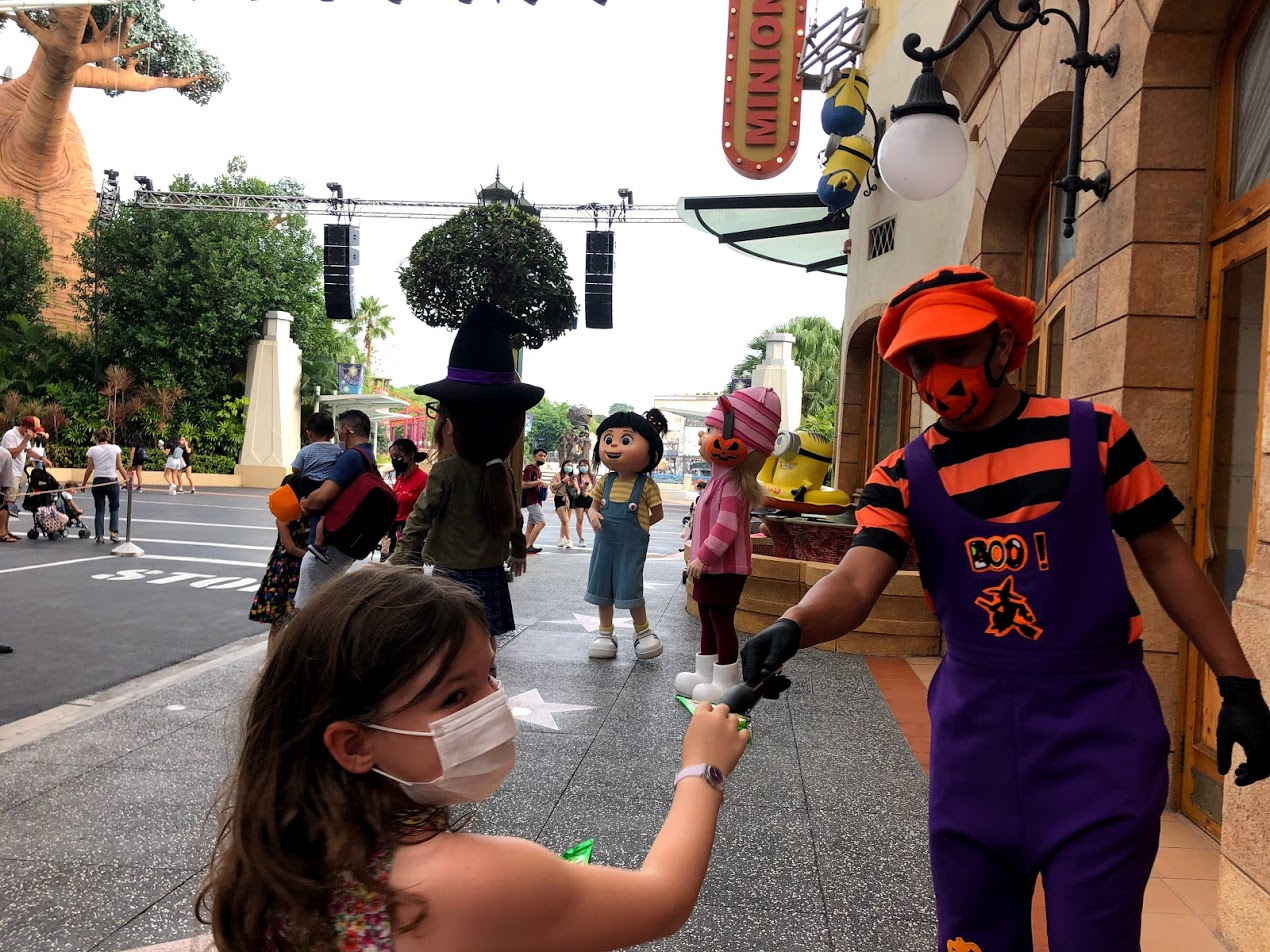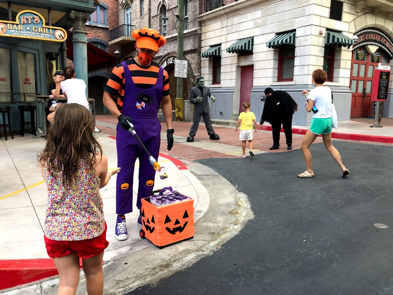 We also did the Trick or Treating option any time we passed it. It was free treats. There would only be a few people in a socially distanced line waiting for a "Treat," handed out by masked, gloved worker with long tongues, along with the option to get your picture taken with a Universal Character.