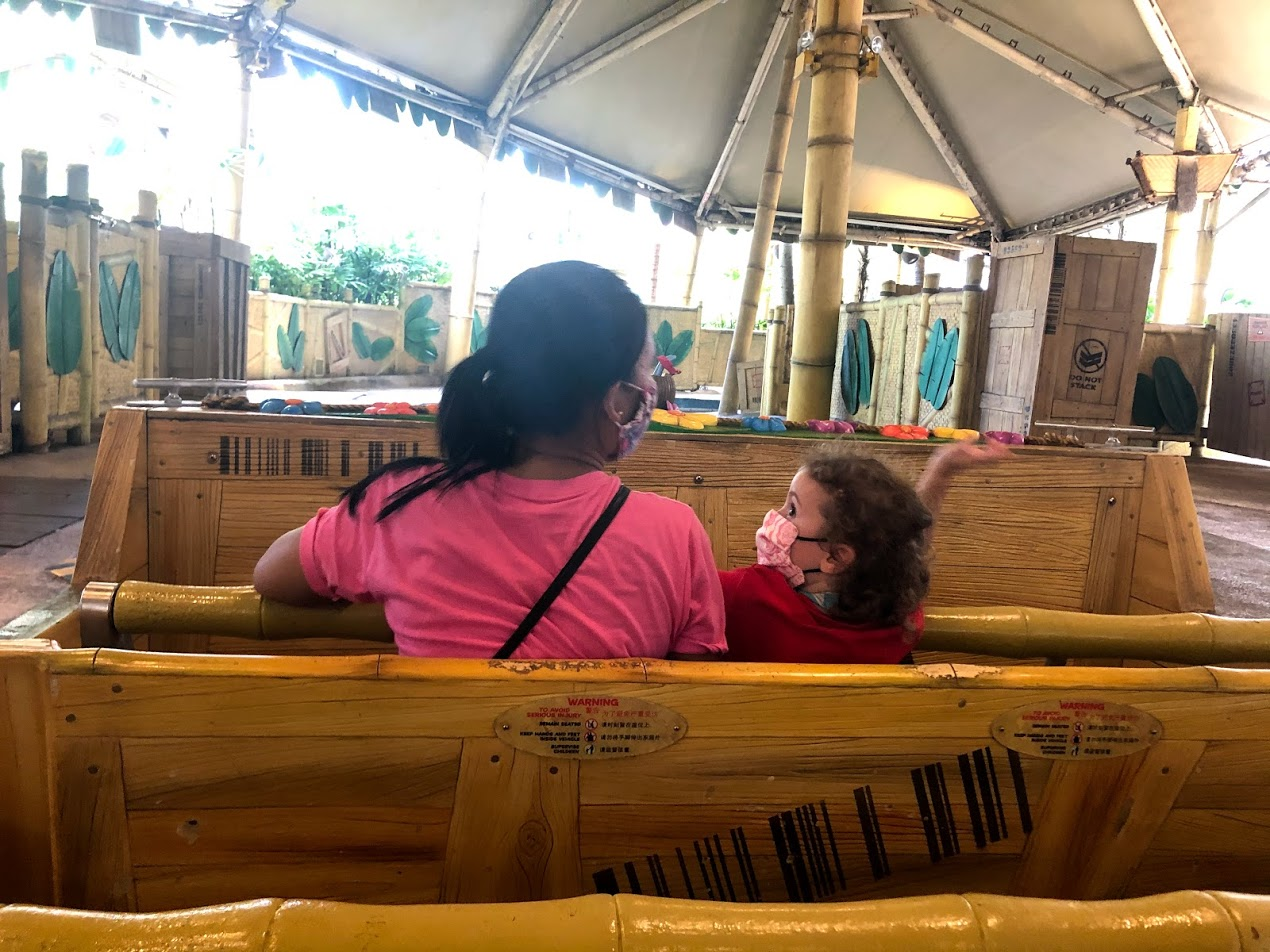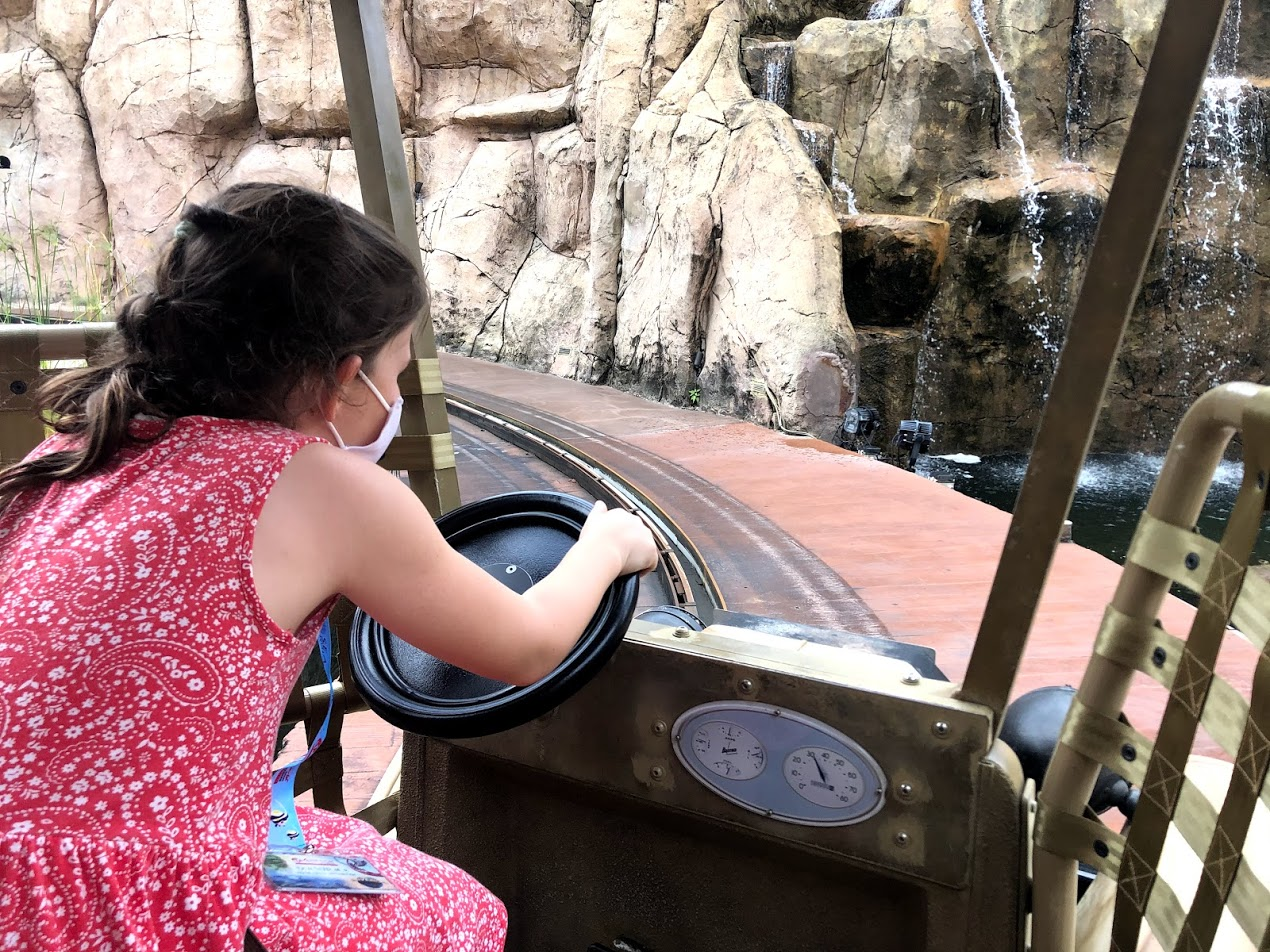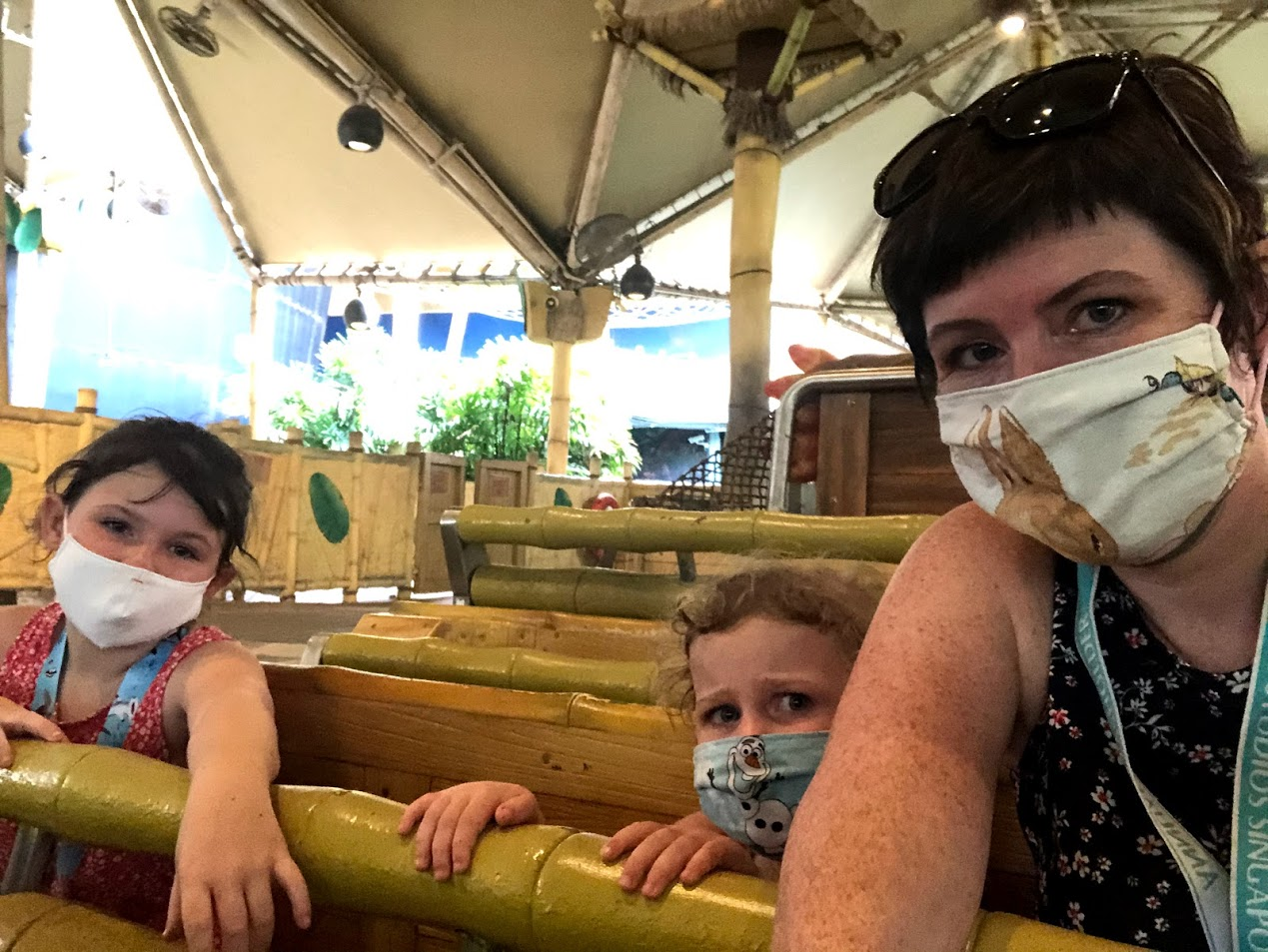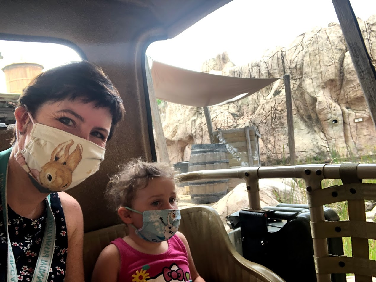 We always went in the morning before, so that was a change for us, but everyone did great. It's easier now that MsI has completly given up naps. After waiting in the (very short) and socially distanced lines, as a group of 5 we were we mostly loaded on rides without any other parties. They skip a row when loading even if it's all just your party