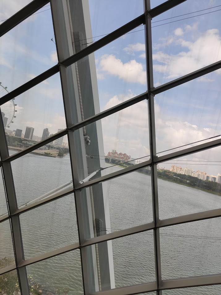 Besides the sculptures we noticed a few other things we hadn't had time to see when we brought the kids with us before. Our biggest find was that all the windows of the entire huge dome can be covered up with something like sailcloth. We imagine this is a combination of protection from bad weather like hurricanes and maybe to help with temperature control. It's hard to see in the photo, but there are wires running across all the windows connected roller furling, like you would see to automatically roll up sails on a sailboat.