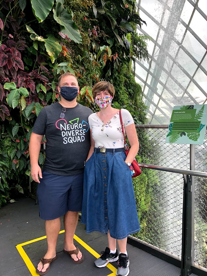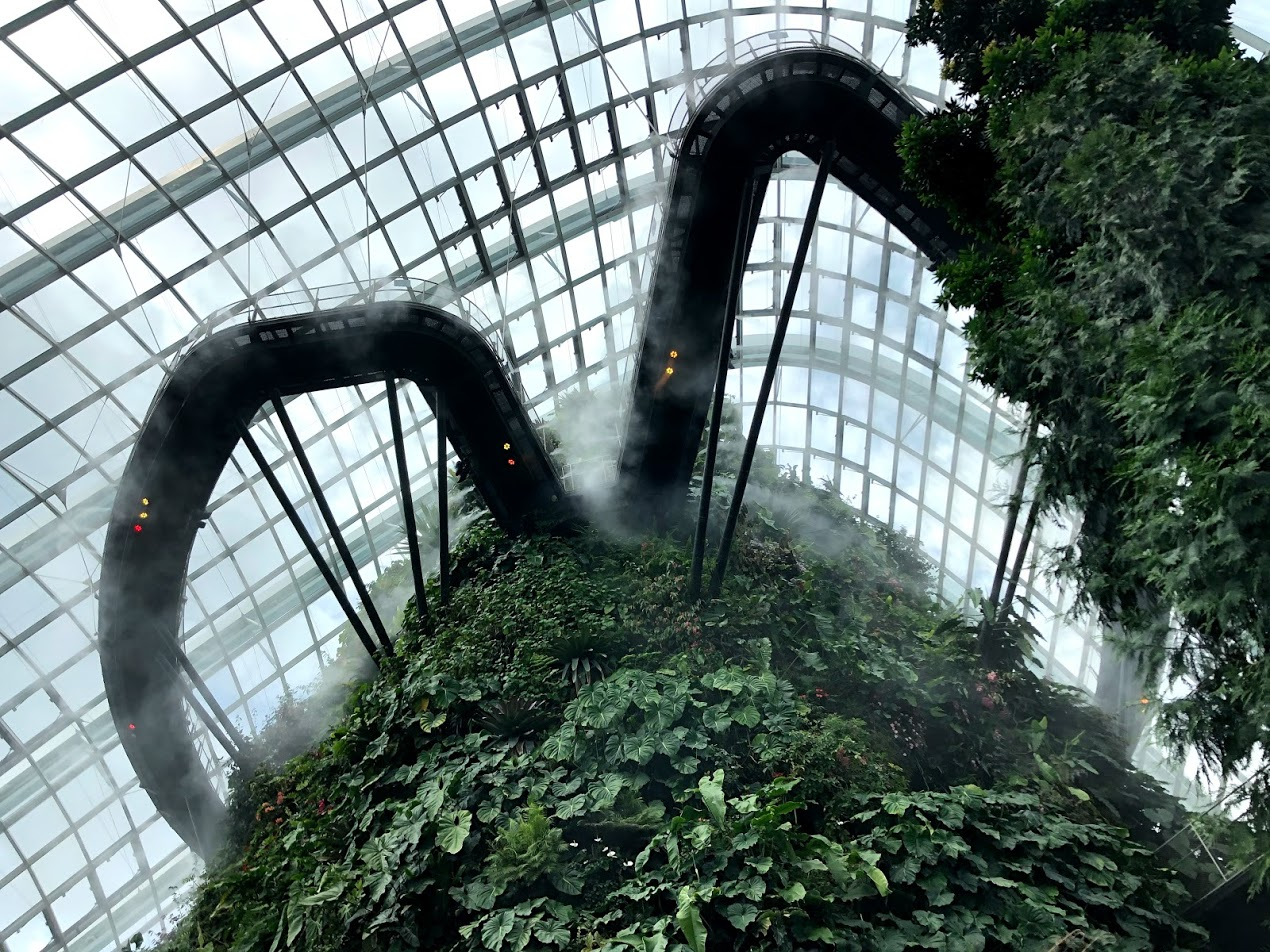 It was a typical warm sunny day in Singapore, about 30 C. It was almost chilly as we walked through the doors into the climate controlled Cloud Forest, meant to represent an tall alpine mountain in Asia. We just stood for a moment feeling the mist off the waterfall and just loving the feeling of cold.