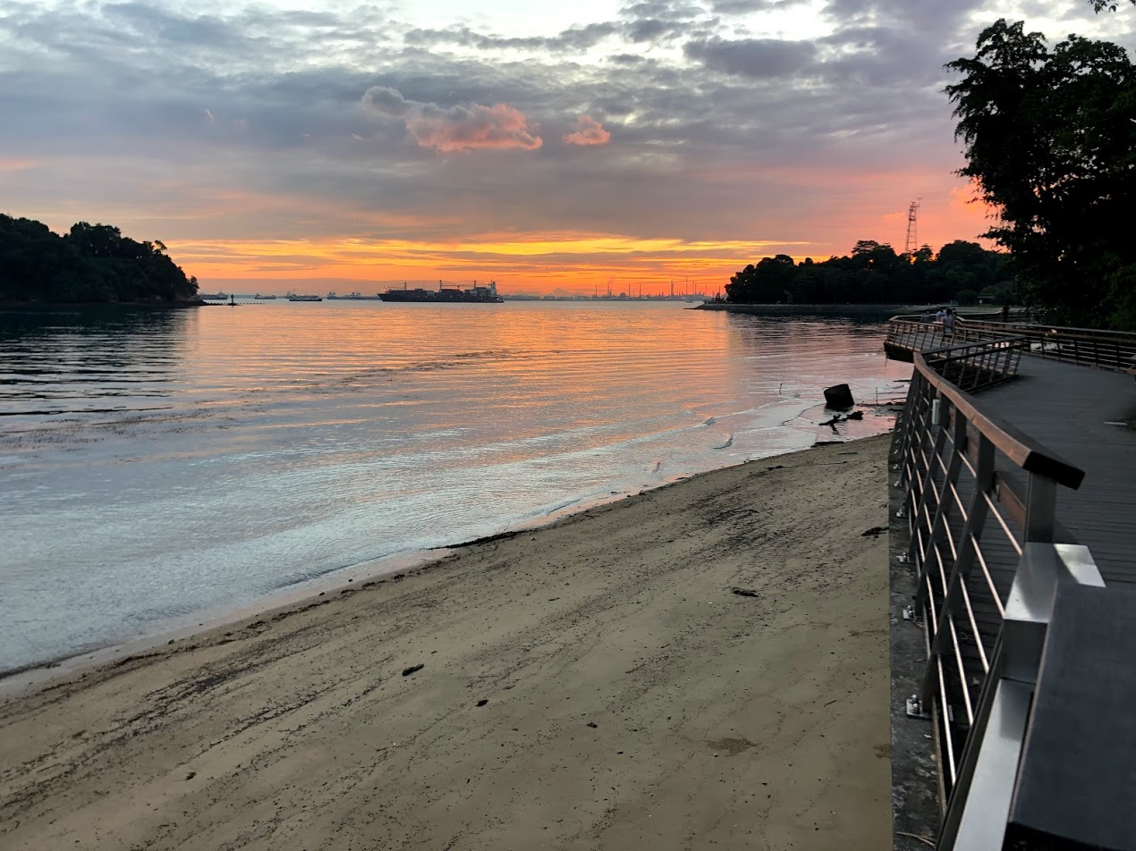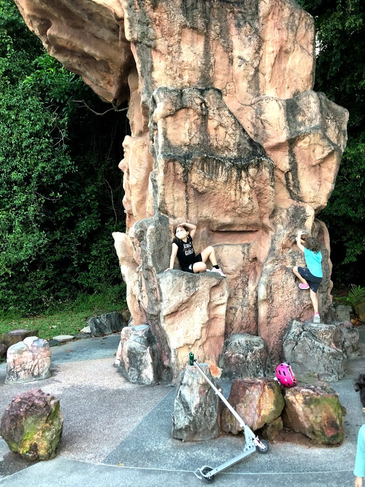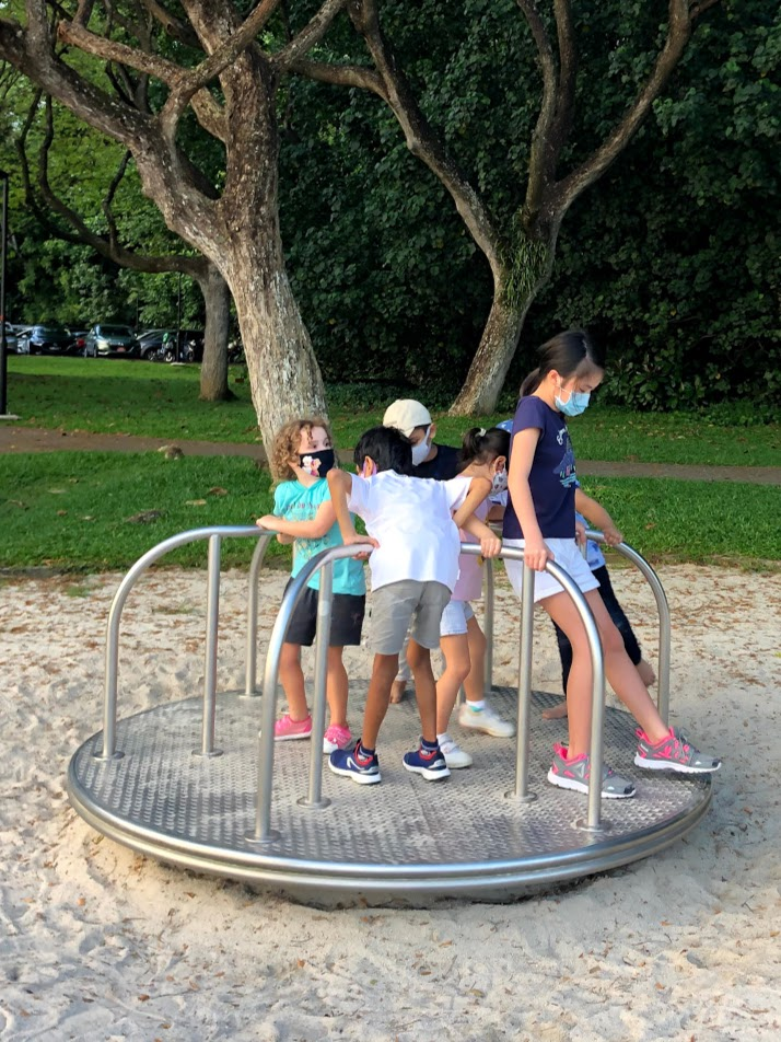 Thankfully, this all happened was late on a Sunday afternoon, so the park was full of people and the playground was quite busy. The kids had to wait in line for the swings. There was almost no chance of us running into a monkey. They are very reclusive at this park and usually only seen very early in the morning. We also got to see the most lovely sunset as we walked home for dinner. It kept getting redder and redder.