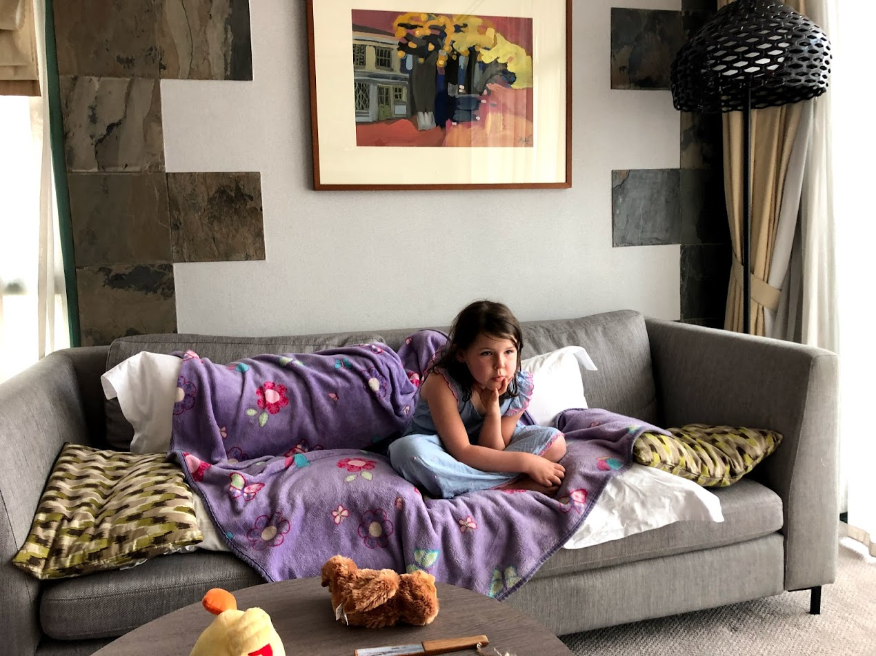 We saw some of our new friends who moved to Singapore a week before us go through this phase already. They looked worn out and then ended up sick with Influenza and the Chicken Pox. I'm terrified Ms. I will come down with Chicken Pox despite having had her first shot. It's not fully effective till the 2nd booster at kindergarten age, and my family has a history of getting chicken pox twice. She has one spot that I swear is a bug bite, but I'm checking her constantly for more spots. We do all seem to be coming down with something - Ms.I started it with a high fever and vomiting. She's feeling a bit better today. This morning the other girls got breakfast and then just looked at it, and now they're cuddling with blankies on the couch. The Air Con makes the fleece blankies possible.