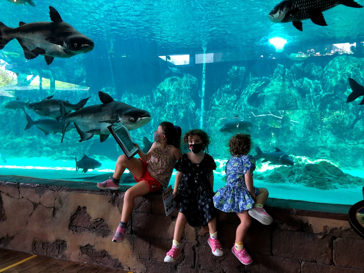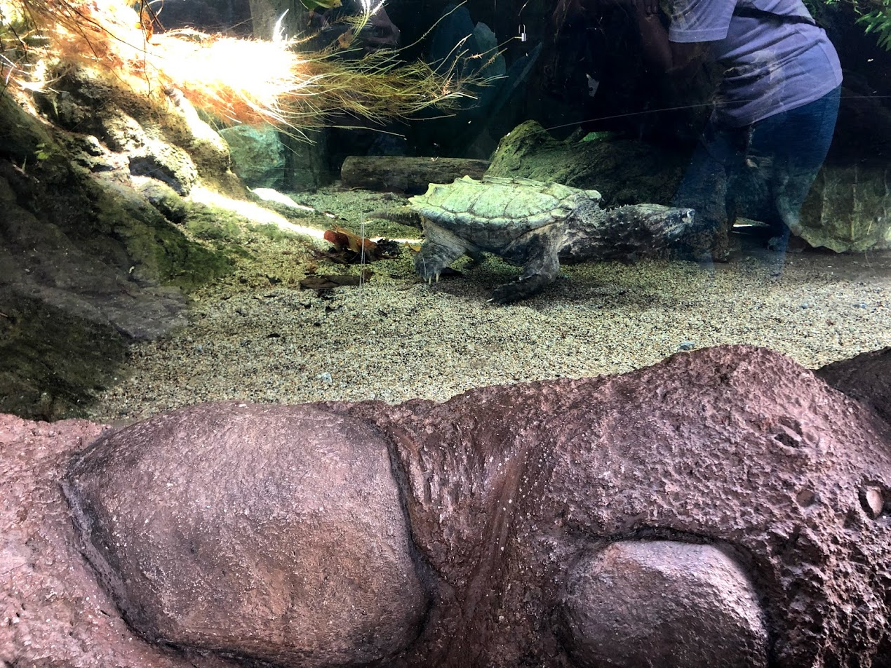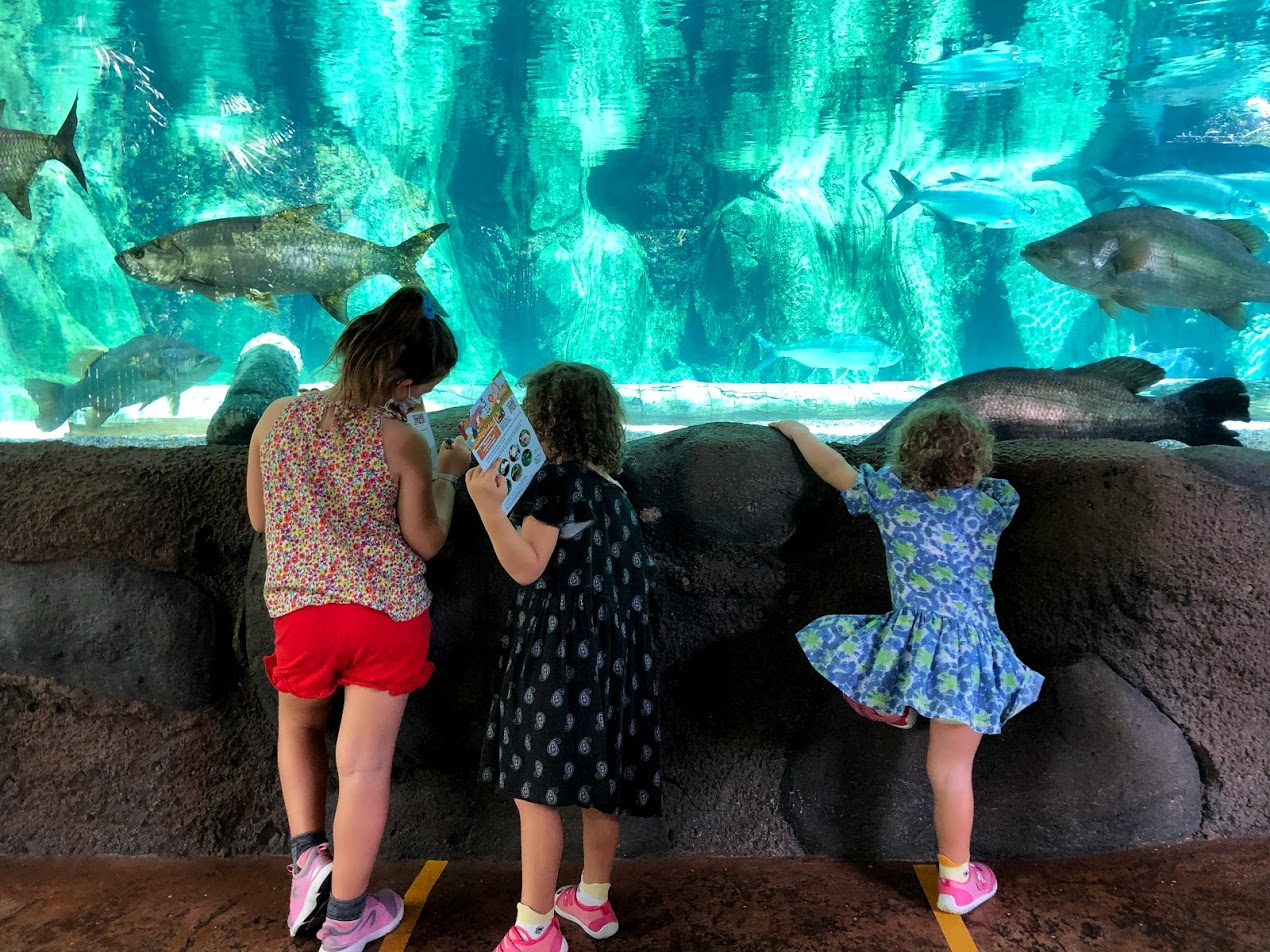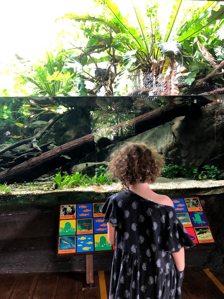We liked comparing the fresh water animals that we are more used to seeing in salt water like large fish, turtles, and sting rays. We are more familiar with the SEA Aquarium that is mostly salt water aquariums. The girls were super excited to identify some of the fish in the tanks that are also in the little aquariums in our house.
