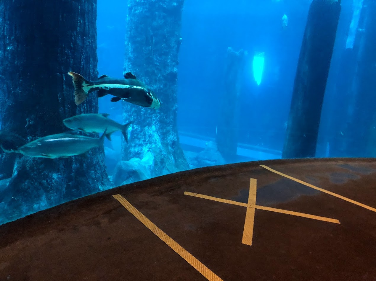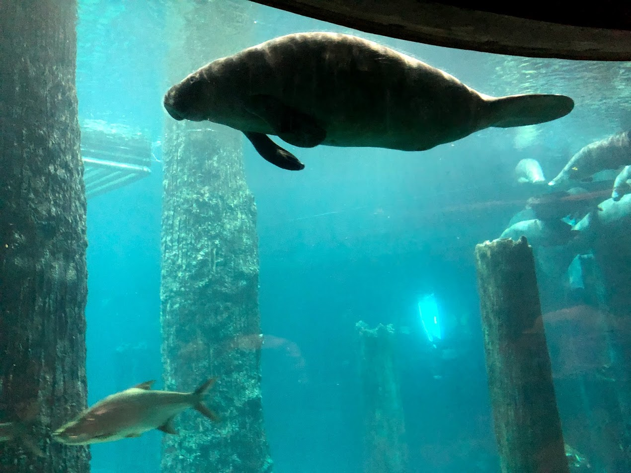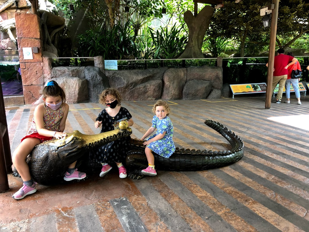 We liked comparing the fresh water animals that we are more used to seeing in salt water like large fish, turtles, and sting rays. We are more familiar with the SEA Aquarium that is mostly salt water aquariums. The girls were super excited to identify some of the fish in the tanks that are also in the little aquariums in our house.