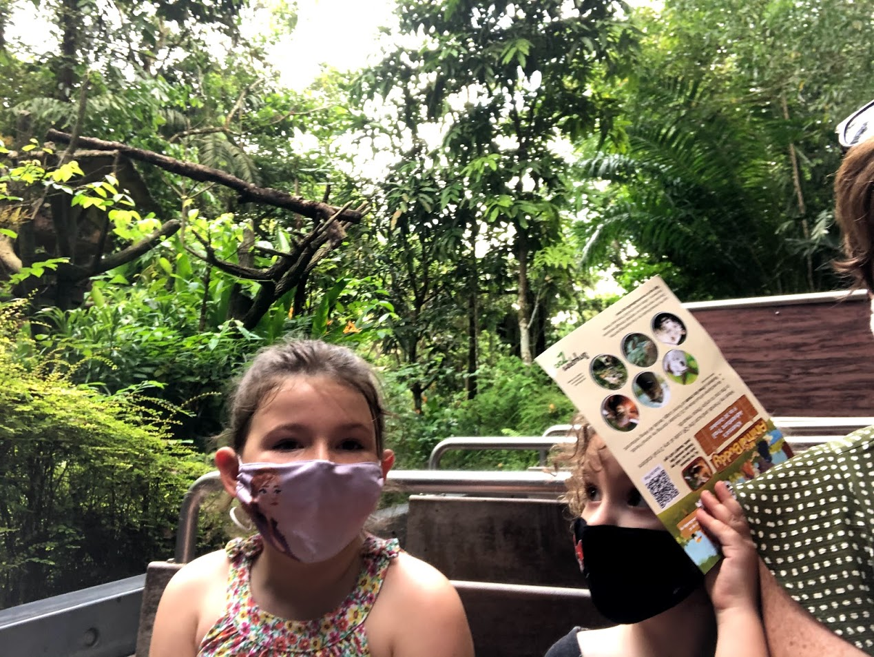 There were a few splashy parts, but our boat was so light that we only got a few sprinklings of water on us. MsE held her scavenger hunt page over her head the whole ride. She said wasn't sure if she was protecting her head from water or from monkeys.